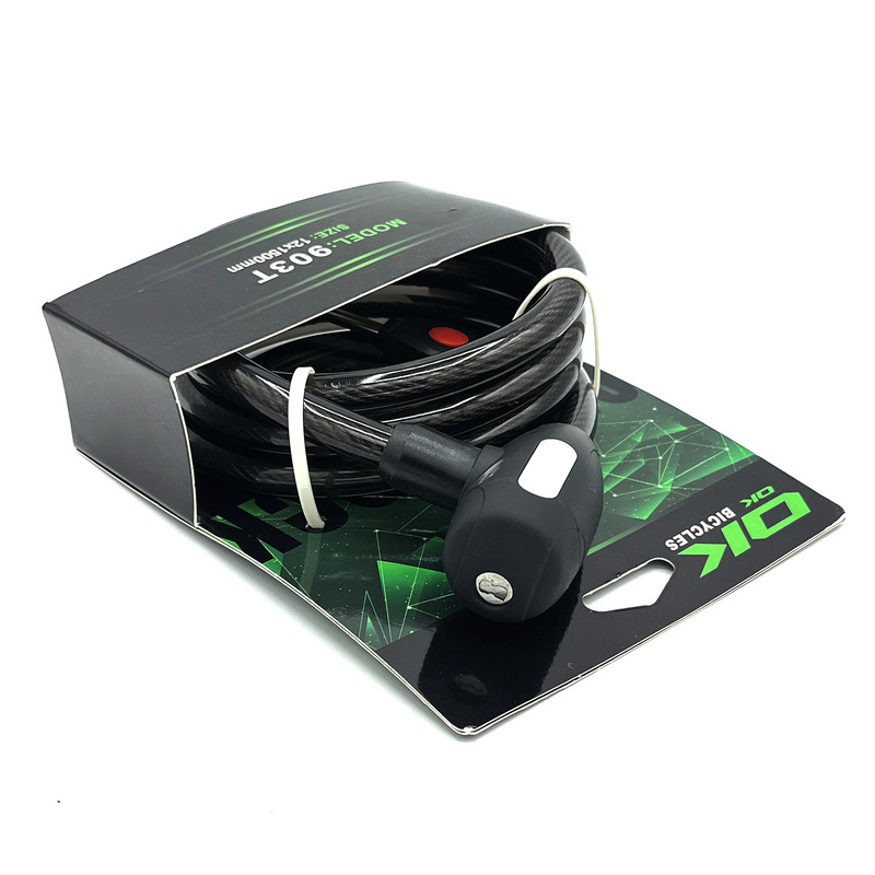 قفل موتور و دوچرخه برند اوکی - دارای روکش پی وی سی و ضد سایش - به طول 1.5 متر (یک و نیم متر) و ضخامت 12 میل می باشد. دارای دو عدد کلید کامپیوتری در داخل بسته بندی