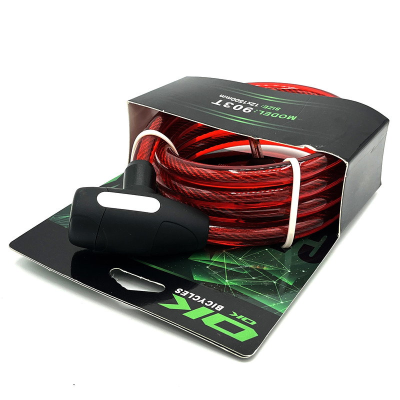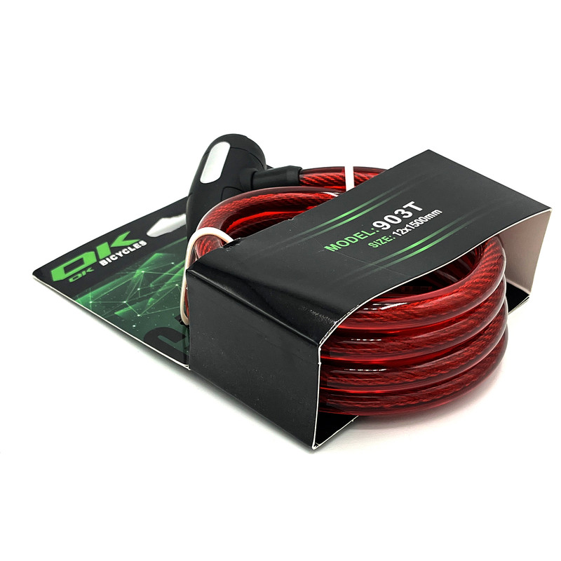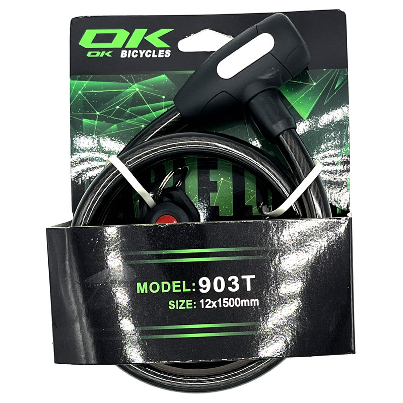 قفل موتور و دوچرخه برند اوکی - دارای روکش پی وی سی و ضد سایش - به طول 1.5 متر (یک و نیم متر) و ضخامت 12 میل می باشد. دارای دو عدد کلید کامپیوتری در داخل بسته بندی
