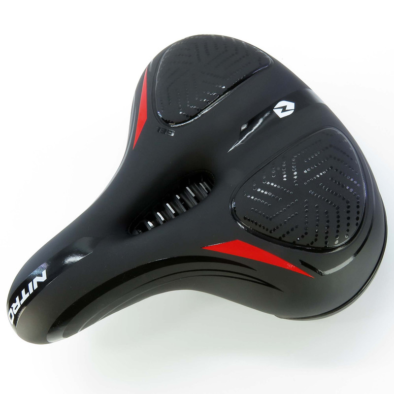 زین دوچرخه نیترو با طراحی ارگونومیک و مهندسیشده، مناسب برای استفادههای شهری و نیمهحرفهای است. ساختار پهن و استفاده از فوم و ژل ضربهگیر در نواحی تماس، توزیع فشار را بهخوبی مدیریت کرده و از بیحسی یا خستگی در سواریهای طولانی جلوگیری میکند. شیار مرکزی برای کاهش فشار روی ناحیه پرینه طراحی شده که از مشکلات گردش خون جلوگیری مینماید. سطح ضد لغزش و طراحی آیرودینامیک با جزئیات گرافیکی، تلفیقی از عملکرد و زیبایی را فراهم کرده است.