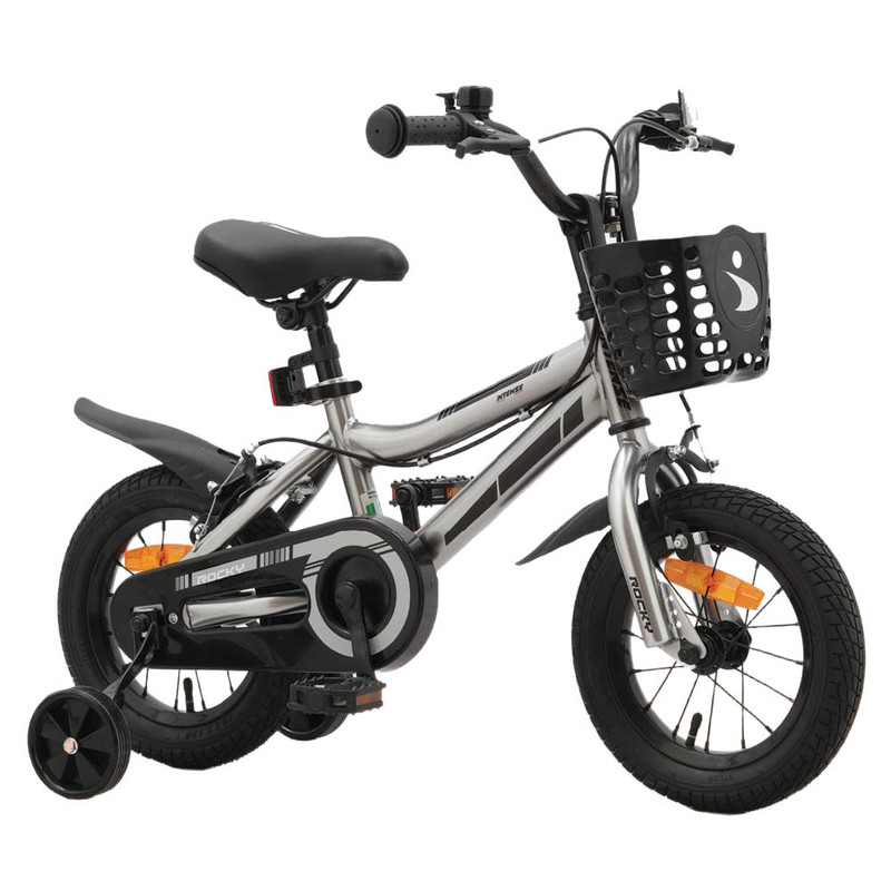 دوچرخه بچگانه اینتنس راکی سایز 12 نقره ای کد 1859 با بدنه آهنی مقاوم و طراحی مدرن، گزینه ای ایده آل برای کودکان 3 تا 6 ساله است. مجهز به ترمز لقمهای ایمن، قاب زنجیر فلزی کامل و چرخ های کمکی استاندارد برای یادگیری راحت و بدون خطر. دارای سبد جلویی، زنگ کودکانه و گلگیر پرشی که ترکیبی از زیبایی، ایمنی و کارایی را در این دوچرخه منحصر به فرد فراهم میکند.