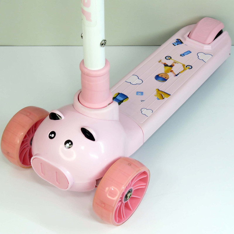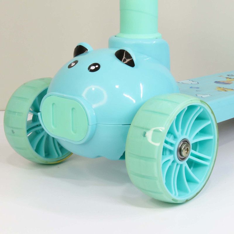 این اسکوتر سهچرخ کودکانه با طراحی فانتزی و رنگهای شاد، مناسب کودکان خردسال است. دارای دسته قابل تنظیم، چرخهای پهن برای تعادل بیشتر، و طراحی ایمن برای مبتدیهاست. گزینهای جذاب برای تشویق کودکان به فعالیت فیزیکی است. در ادامه به بررسی ویژگیهای آن میپردازیم: 1-ظاهر اسکوتر با استفاده از سر حیوانات طراحی شده است که باعث جذابیت بیشتر برای کودکان میشود. 2-رنگهای شاد و ملایم (آبی، صورتی، سبز) حس آرامش و جذابیت بصری را افزایش میدهد. 3-سهچرخ بودن اسکوتر تعادل بیشتری برای کودکان فراهم میکند، که به خصوص برای کودکان خردسال و مبتدی اهمیت زیادی دارد. 4-چرخها پهن و مقاوم، که پایداری در حرکت را تضمین میکنند. 5-دسته قابل تنظیم که امکان استفاده برای سنین مختلف را فراهم میکند و همراه رشد کودک قابل تنظیم است. 6-این مدل دارای چراغ در چرخها میباشد که علاوه بر زیبایی، ایمنی را در محیطهای کمنور افزایش میدهد.