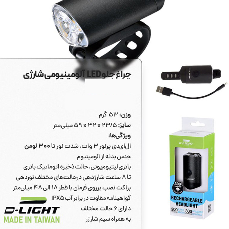 چراغ جلوی دوچرخه دی لایت مدل 300 آلمینیوم کد 1406
