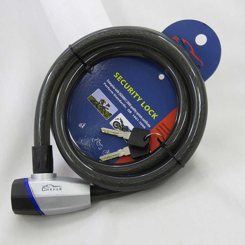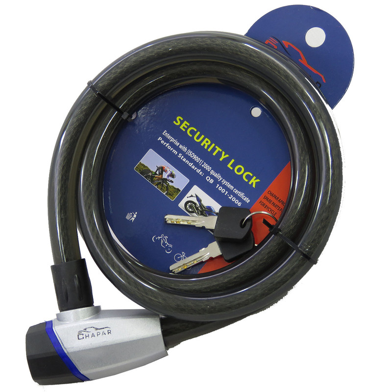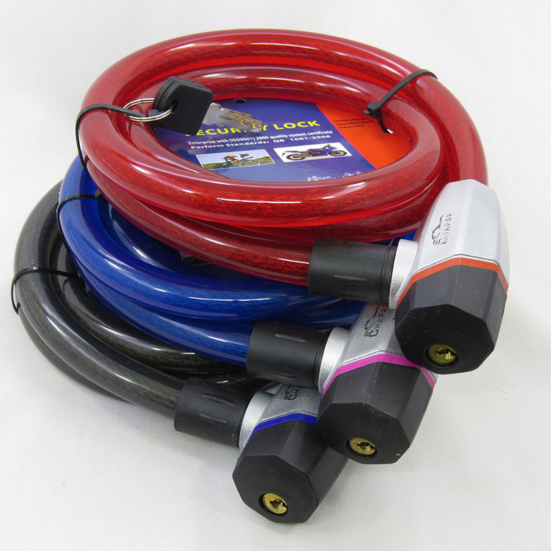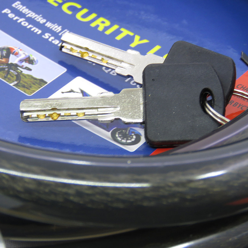 قفل ضد برش تسمه ای طول 1.5 متر ضخامت 18 میل دارای دو عدد کلید ضد سرقت لیزری کیفیت عالی به همراه روکش ضد خش مناسب برای دوچرخه - موتور سیکلت و سایر مصارف دیگر میباشد