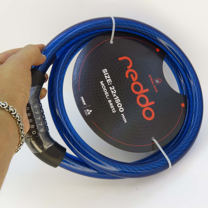 قفل موتور سیکلت ردو مدل 84612-GH با کابل فولادی ضخیم 22 میلیمتری و طول 1.5 متر، امنیت بالایی برای موتورسیکلت، دوچرخه و سایر وسایل شما فراهم میکند. مجهز به قفل ۵ رقمی رمزدار قابل تنظیم بوده و طراحی فنری آن، حمل و استفاده را بسیار آسان کرده است. روکش مقاوم پلاستیکی نیز از خط و خش بر روی بدنه وسایل جلوگیری میکند.