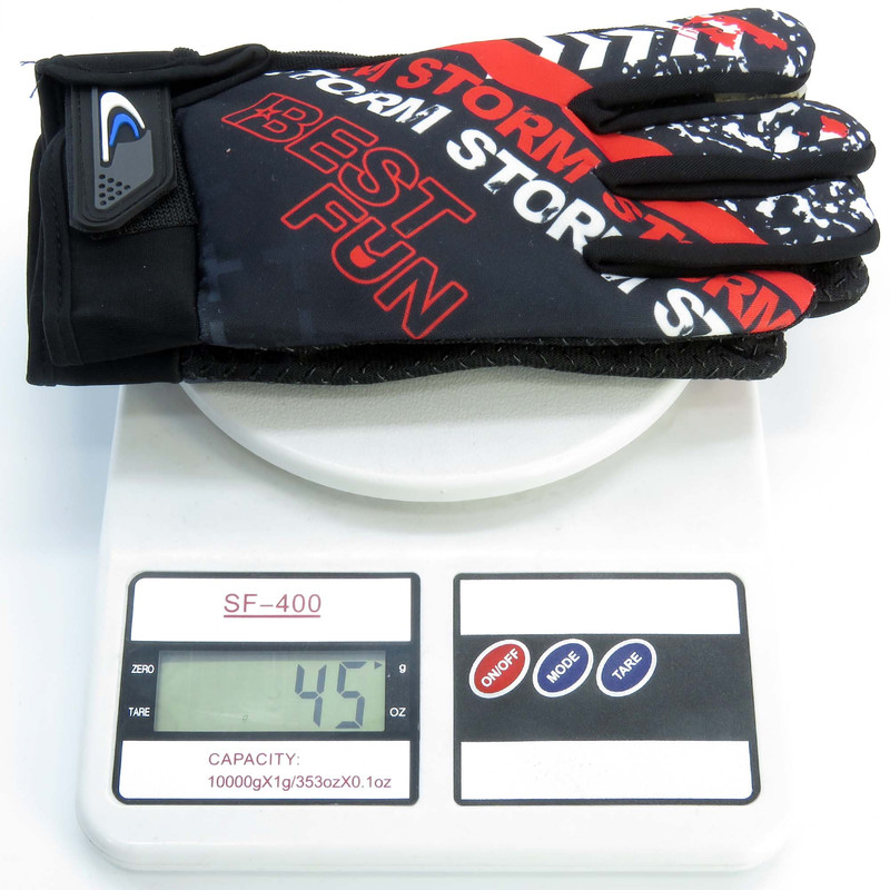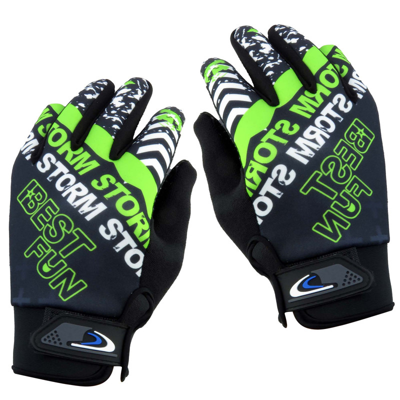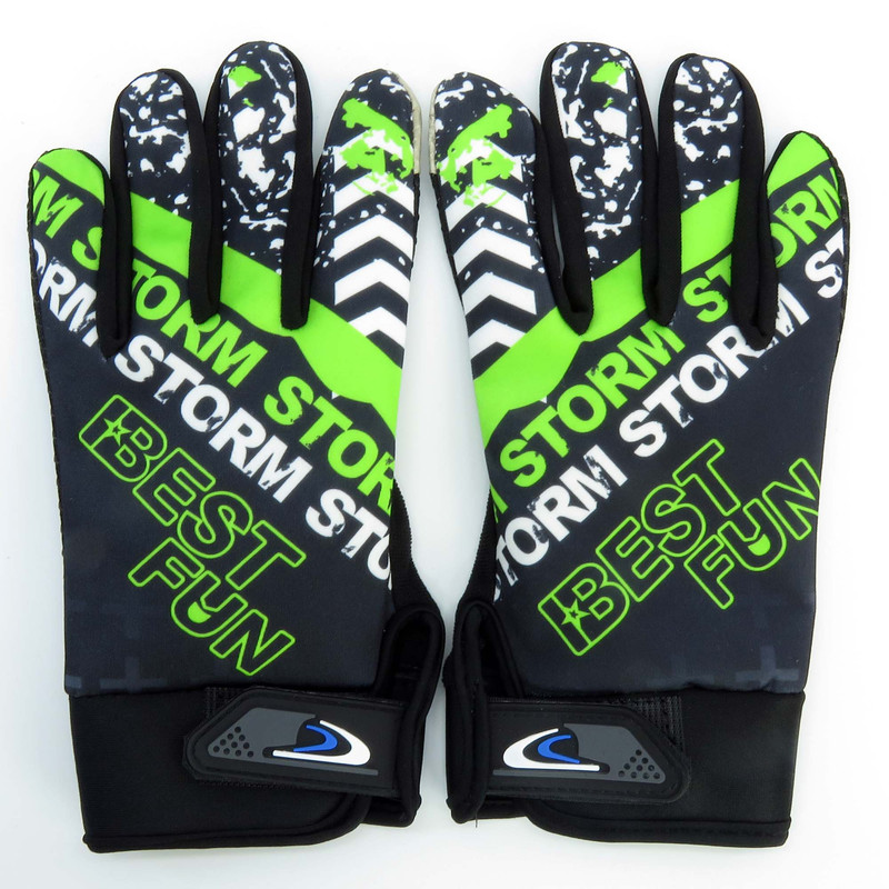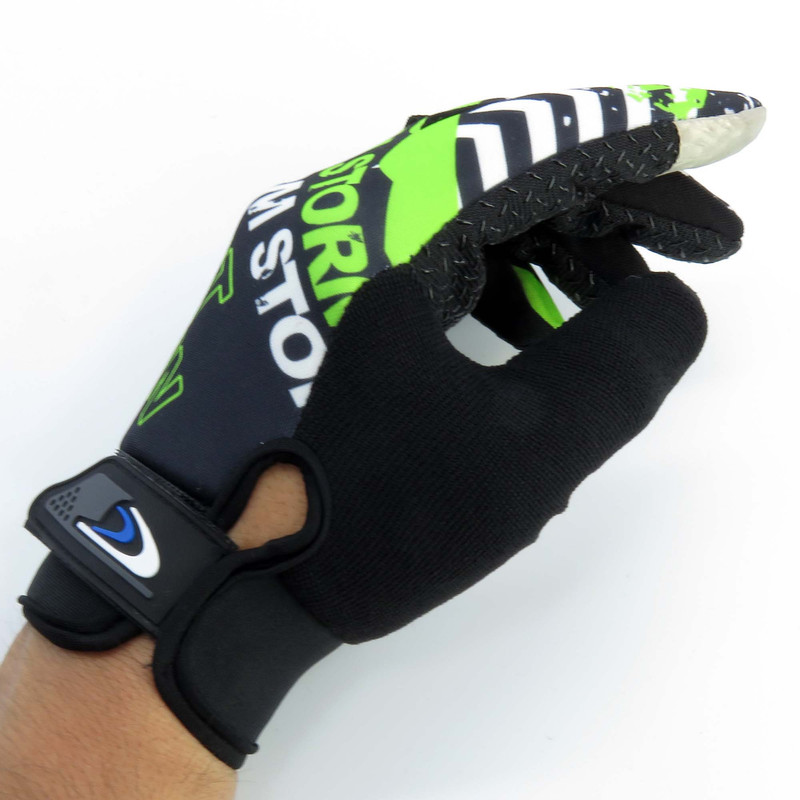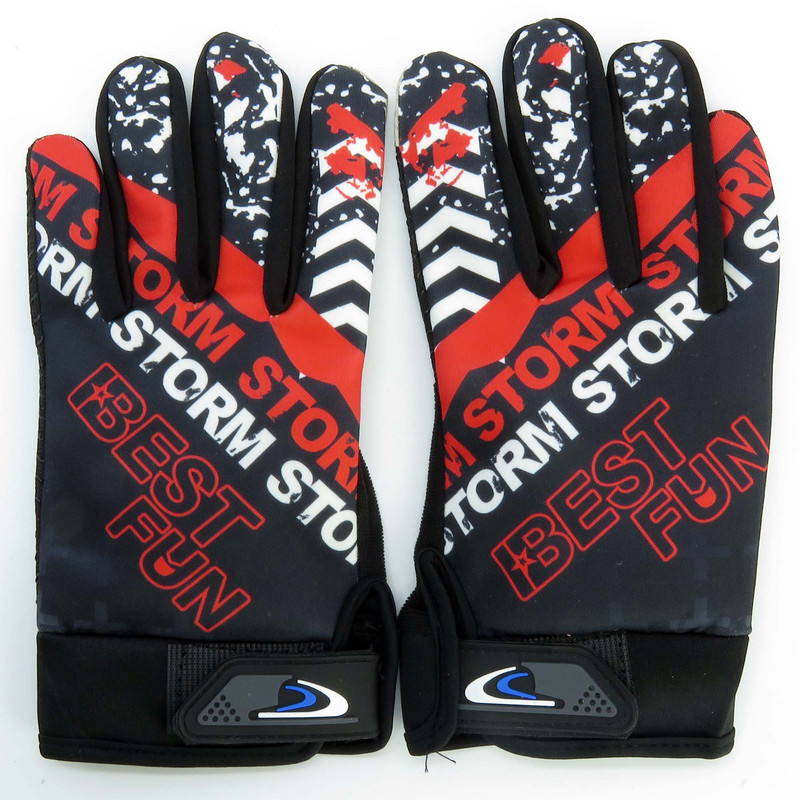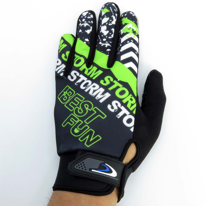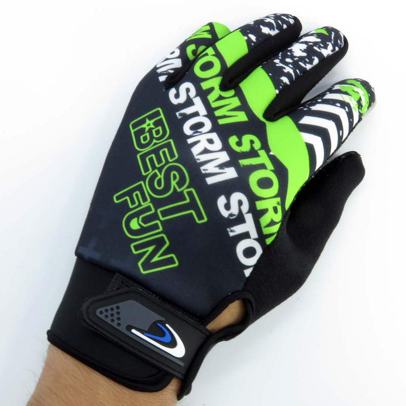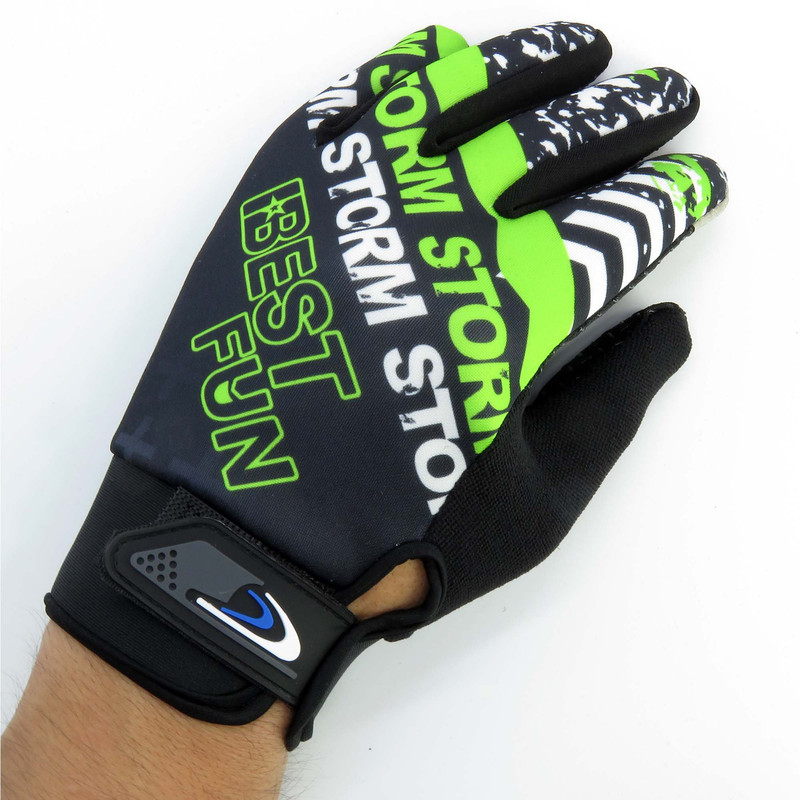 این دستکش تمام‌انگشتی با طراحی رنگی و چاپی پرانرژی، مناسب برای فعالیت‌هایی مانند دوچرخه‌سواری، موتورسواری سبک یا ورزش‌های فضای باز است. قسمت پشتی آن از پارچه‌ای کشی و سبک ساخته شده که راحتی و آزادی حرکت را افزایش می‌دهد. بخش مچ دارای بست چسبی قابل تنظیم است که به فیکس شدن بهتر دستکش کمک می‌کند. همچنین طراحی مشکی با جزئیات، جلوه‌ای اسپرت و جوان‌پسند به آن داده است.