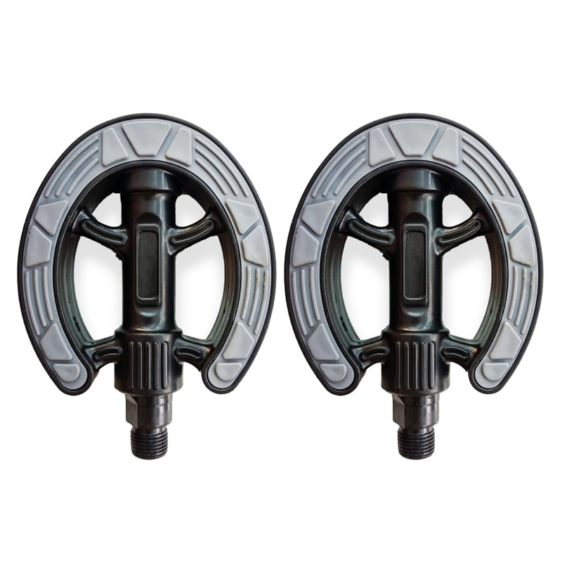 رکاب 26 ژله ای گرد کد 752 یکی از بهترین گزینههای راحت و ایمن برای دوچرخهسواران حرفهای و مبتدی است که به دنبال رکابزنی نرم بدون لغزش پا در مسیرهای متنوع هستند. این رکاب با طراحی بلبرینگی (ساچمه داخلی برای چرخش روان) و رویه ژلهای نرم و عاجدار گرد (ضخامت 1 سانتیمتر)، اصطکاک بالا و جذب ضربه را فراهم میکند و برای دوچرخههای کوهستانی، شهری و تورینگ سایز 26 اینچ ایدهآل عمل مینماید. ساختهشده از آلومینیوم سبک و پلاستیک ژلهای مقاوم (وزن هر جفت حدود 320 گرم، طول 11 سانتیمتر)، مقاومت فوقالعادهای در برابر سایش، رطوبت و ضربههای روزانه ارائه میدهد و از خستگی پا در سواریهای طولانی جلوگیری میکند. محور رزوهای 9/16 اینچ آن، با میل رکاب استاندارد سازگار است و تعادل بهتری در پدالزنی ایجاد میکند.