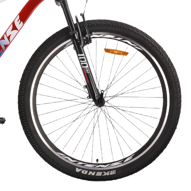 دوچرخه کوهستان اینتنس CV100 با فریم آلومینیومی 6061 و سیستم کابل کشی داخلی، انتخابی ایده آل برای مسیر های سخت و پر چالش کوهستانی است. بهره مندی از سیستم دنده 21 سرعته Sunrun، دو شاخ قفل شونده و ترمزهای V-Brake، عملکردی نرم، دقیق و ایمن را در مسیر های آفرود تضمین می کند. تایر های پهن Kenda و طوقه های دو جداره آلومینیومی، پایداری و کنترل فوق العاده ای در جاده های خاکی و نا هموار فراهم می کنند.