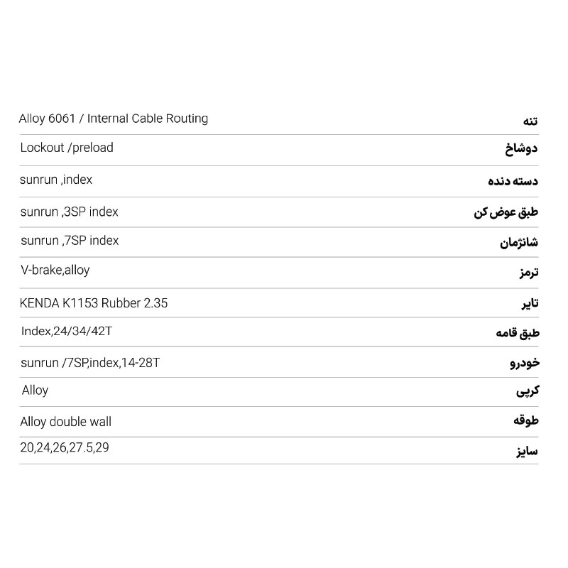 | توضیحات شانژمان | Sunrun، 7 سرعته (7SP Index) |