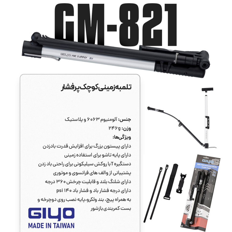 تلمبه زمینی کوچک تایوان جیو کد 1440 یکی از بهترین ابزارهای ایستاده فشرده برای دوچرخهسواران حرفهای و روزمره است که به دنبال باد کردن سریع و دقیق تایرها در فضاهای محدود مانند آپارتمان یا فروشگاه کوچک هستند. این تلمبه ایستاده با طراحی آلومینیومی سبک (وزن حدود 1.2 کیلوگرم، ارتفاع 85 سانتیمتر) و گیج آنالوگ دقیق تا 120 PSI، فشار باد را نمایش میدهد و با والوهای HV (حجم بالا) و Pr (فشار بالا) سازگار است، که باد کردن تایرهای دوچرخه، توپ یا وسایل بادی را آسان میکند. ساختهشده از مواد باکیفیت تایوانی (برند GIYO)، مقاومت بالایی در برابر سایش، رطوبت و ضربه ارائه میدهد و برای دوچرخههای MTB، شهری و فولدر ایدهآل عمل میکند، بدون اینکه فضای زیادی اشغال کند.