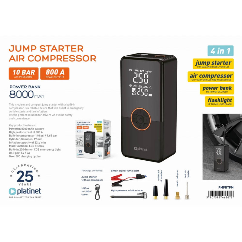 کمپرسور هوا و جامپ استارتر 60 وات مدل cx-718 کد 1881