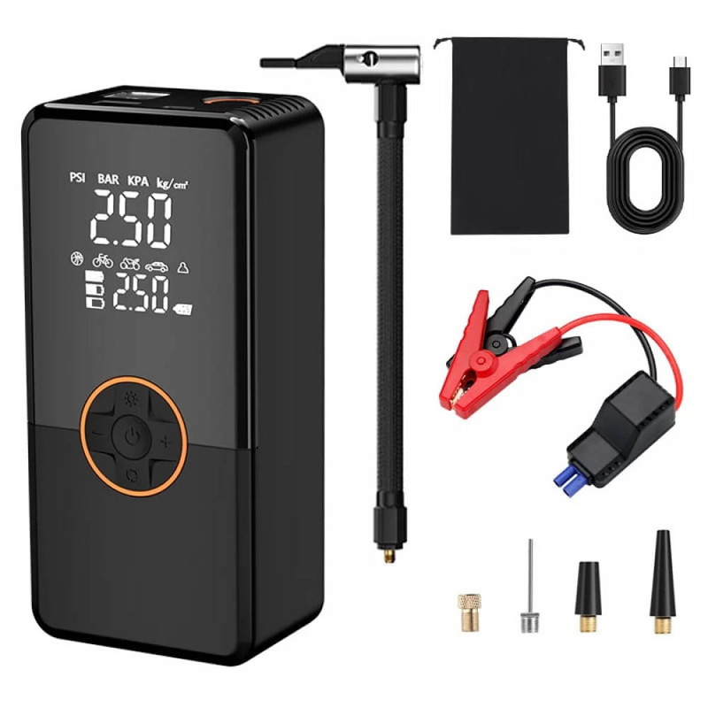 | اقلام همراه | این محصول شامل مجموعهای از سریها و آداپتورهای مختلف برای انواع استفاده هاست؛ از سوزن باد توپ گرفته تا سری های مخصوص تایرهای مختلف. همچنین کیف حمل پارچه ای به همراه دستگاه، حمل و نگهداری آن را آسان و منظم میکند. |
