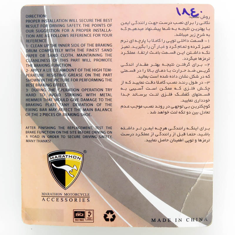 لنت ترمز موتور سیکلت ماراتن مدل CDI کد 1871