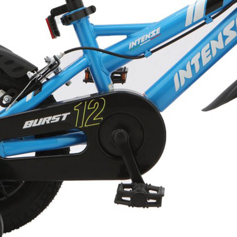 دوچرخه بچگانه اینتنس BURST سایز 12 آبی کد 1858 با طراحی جذاب و بدنه آهنی مقاوم، انتخابی ایمن و بادوام برای کودکان 3 تا 6 ساله است. مجهز به ترمز لقمه ای، قاب زنجیر فلزی کامل و چرخ های کمکی برای حفظ تعادل و افزایش ایمنی کودک در هنگام دوچرخه سواری است. دارای سبد جلویی، زنگ کودکانه و گلگیر پرشی که علاوه بر زیبایی، کارایی بیشتری به این دوچرخه بچگانه میبخشد.