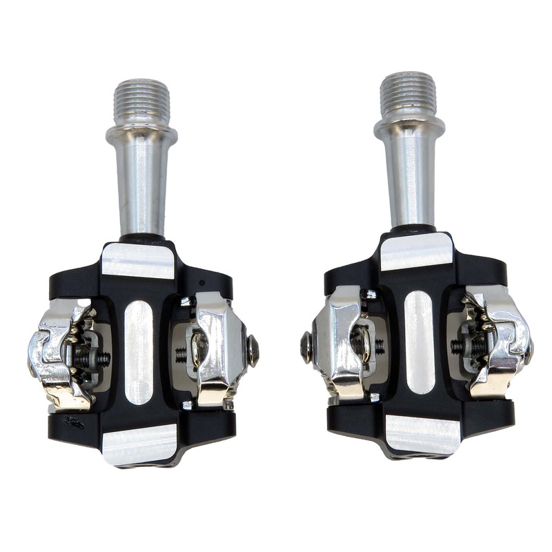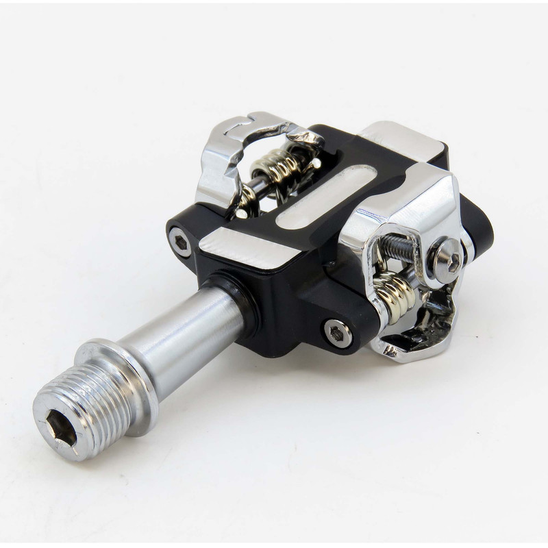رکاب آلومینیوم تایوان نکو قفل شو کوهستان کد 1438 یکی از پیشرفتهترین رکابهای حرفهای برای دوچرخهسواران MTB است که به دنبال افزایش کارایی و قدرت در مسیرهای ناهموار و سربالاییهای تند هستند. این رکاب قفلشو (clipless) با طراحی دوطرفه و کلیپ SPD (سازگار با کفشهای شیمانو SPD)، از مواد آلومینیوم CNC سبک و مقاوم ساخته شده (وزن هر جفت حدود 320 گرم، محور Cr-Mo 9/16 اینچ) و بلبرینگهای صنعتی آن، چرخش روان بدون اصطکاک را فراهم میکند، که برای دوچرخههای کوهستانی، کراسکانتری و گراول ایدهآل عمل مینماید. سطح عاجدار کلیپ، اتصال محکم پا را تضمین میکند و از لغزش در شرایط خاکی یا مرطوب جلوگیری مینماید.