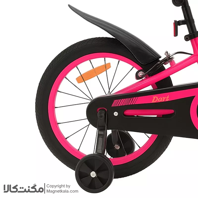 رنگ صورتی پاستلی فوقالعاده ملایم با لوگوی نقرهای و خطوط سفید ظریف، ظاهری کاملاً دخترانه، شیک و رویایی دارد که با لباسهای سفید، طوسی، جین و حتی مشکی بهطرز خیرهکنندهای ست میشود. این رنگ در فروشگاه magnetkala.com در کمتر از یک هفته پرفروشترین دوچرخه دخترانه سایز ۱۶ شد!