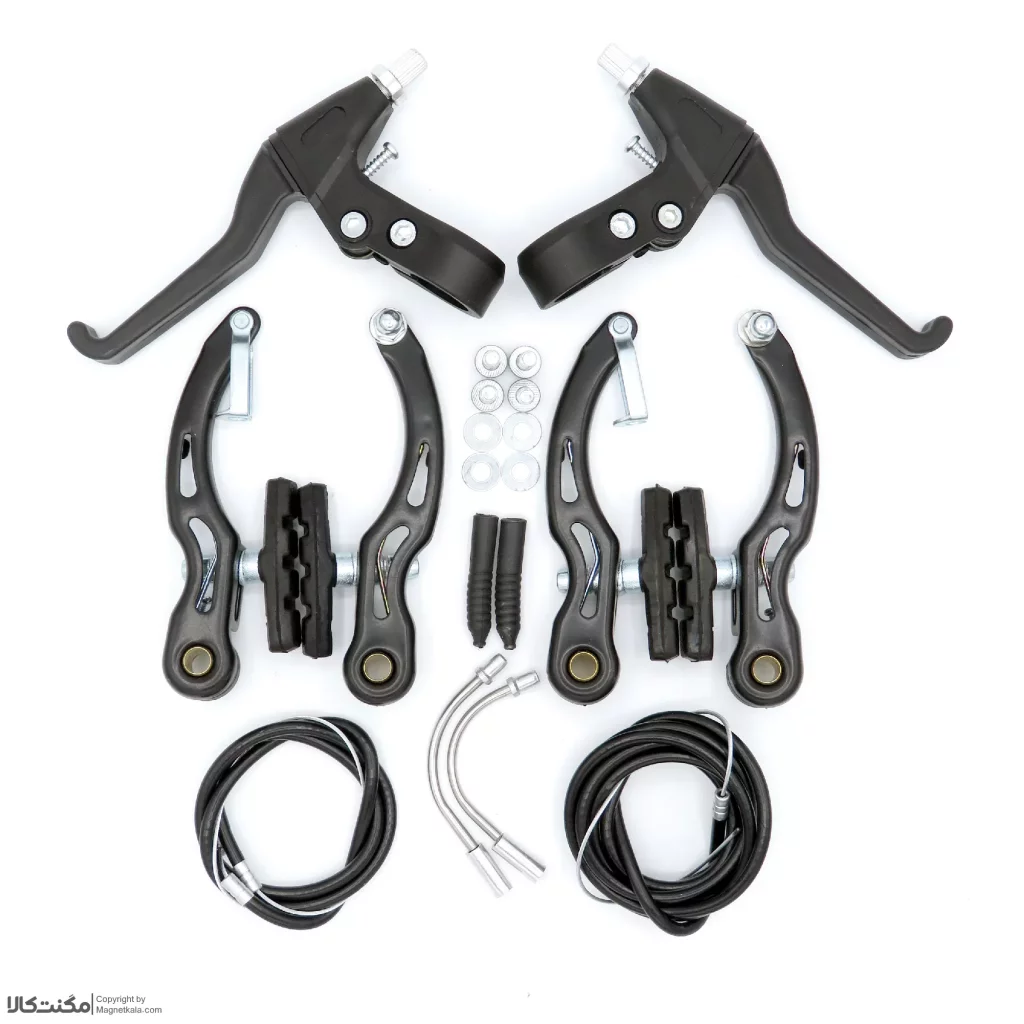 | اقلام همراه | 4 عدد پایه ترمز فلزی2 عدد خم ترمز4 عدد پیچ به همراه واشر2 عدد سیم با روکش2 عدد کت ترمز4 عدد لقمه ترمز |