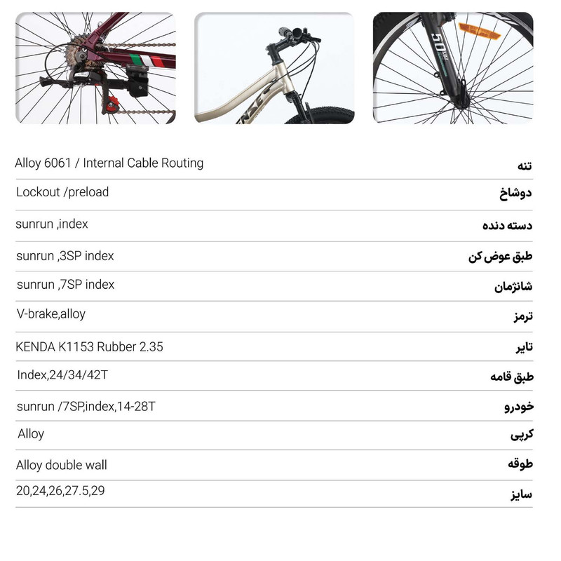 | توضیحات ترمز | V-Brake آلومینیومی |