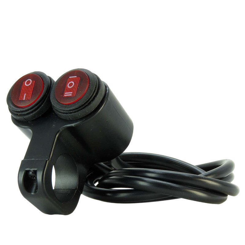 کلید پروژکتور دو پل کد 1901، کلید ضدآب پلاستیک تقویتشده دوپل 12-80 ولت 30 آمپر×2 با LED قرمز، اقتصادی و مقاوم برای فرمان دوچرخه و موتور. خرید و فروش در فروشگاه magnetkala.com با قیمت مناسب، نصب سریع و گارانتی اصالت.