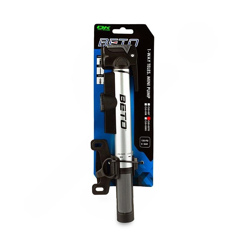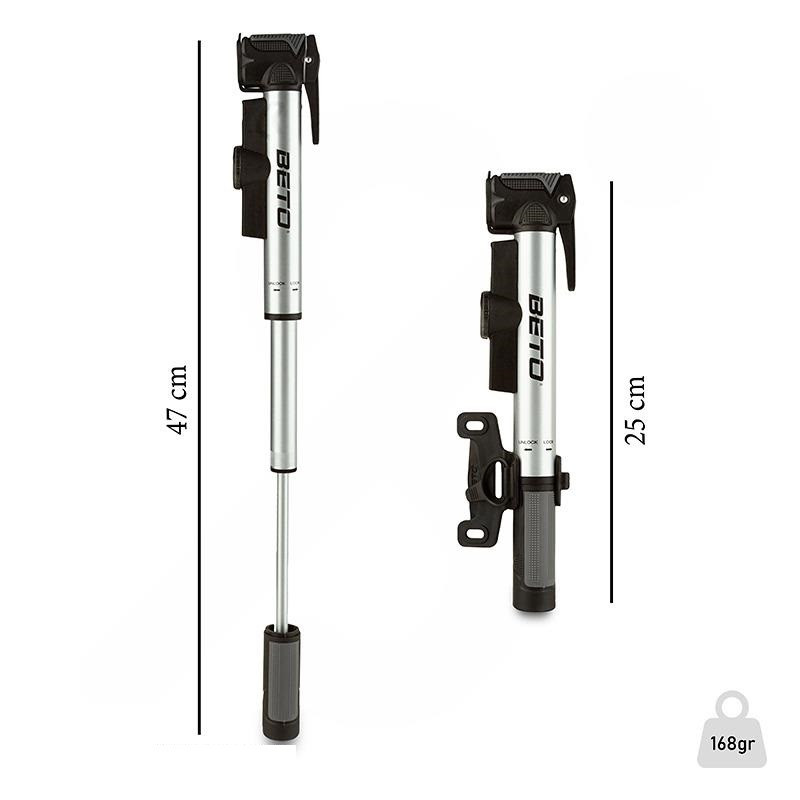 تلمبه دستی بتو آلومینیوم کد 1902 (مشابه Beto Pocket) سبکترین و حرفهایترین تلمبه دستی موجود در ایران است که با بدنه تمام آلومینیوم 6061 CNC و طراحی تاشو، به راحتی در جیب پیراهن دوچرخهسواری یا کوله کوچک جا میشود و برای دوچرخهسواران جاده، گراول، تورینگ و MTB که نمیخواهند در مسیر با پنچرگی زمینگیر شوند، ساخته شده.