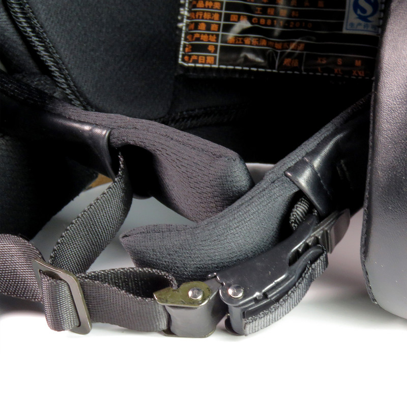 - بند چانه دکمهای فلزی + حلقه D-Ring دوبل برای امنیت بیشتر