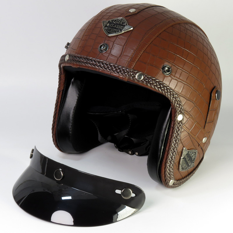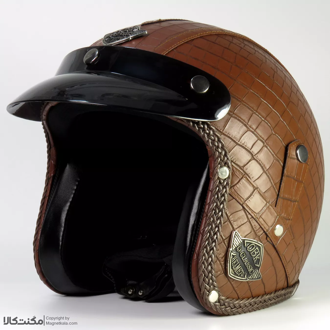 کلاه کاسکت Aldous وسپایی کد 1920، کاسکت رترو نیمجت تمامچرم کرم-قهوهای با ویزور شفاف + آفتابی داخلی، وزن 1120 گرم. خرید و فروش در فروشگاه magnetkala.com با قیمت مناسب، استاندارد DOT، دوخت دست و گارانتی اصالت.