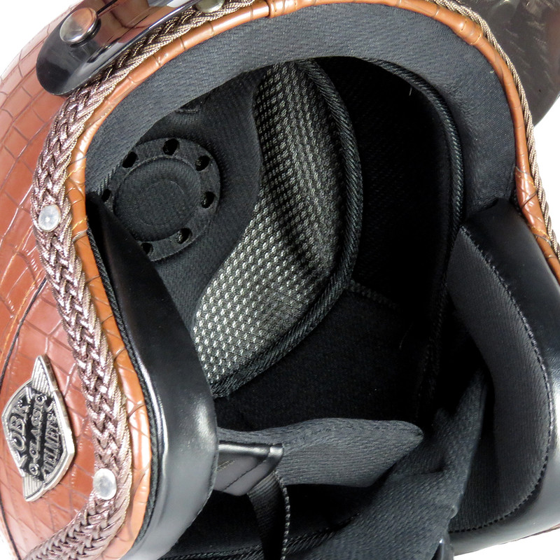 کلاه کاسکت Aldous وسپایی کد 1920 لوکسترین کاسکت وسپایی موجود در ایران است که با چرم مصنوعی اعلا به رنگ کرم-قهوهای vintage، دوخت دستی و جزئیات کروم پولیششده، دقیقاً حس کاسکتهای دستساز ایتالیایی دهه ۵۰ را میدهد؛ انتخاب اول سواران وسپا، کافهریسر، اسکوترهای لوکس و کسانی که استایل کلاسیک واقعی میخواهند.