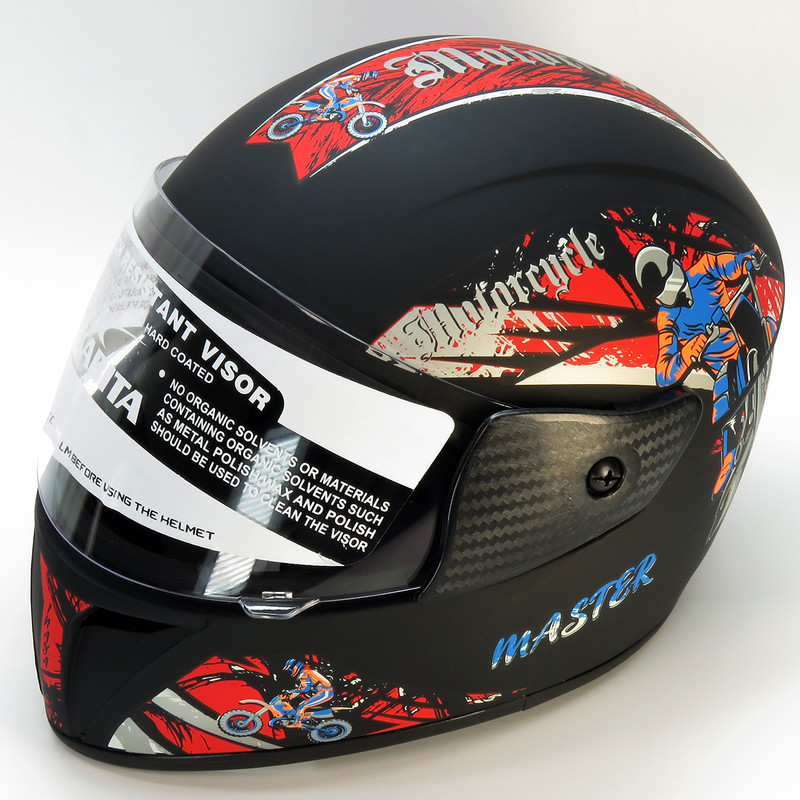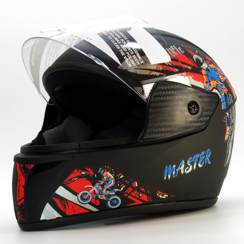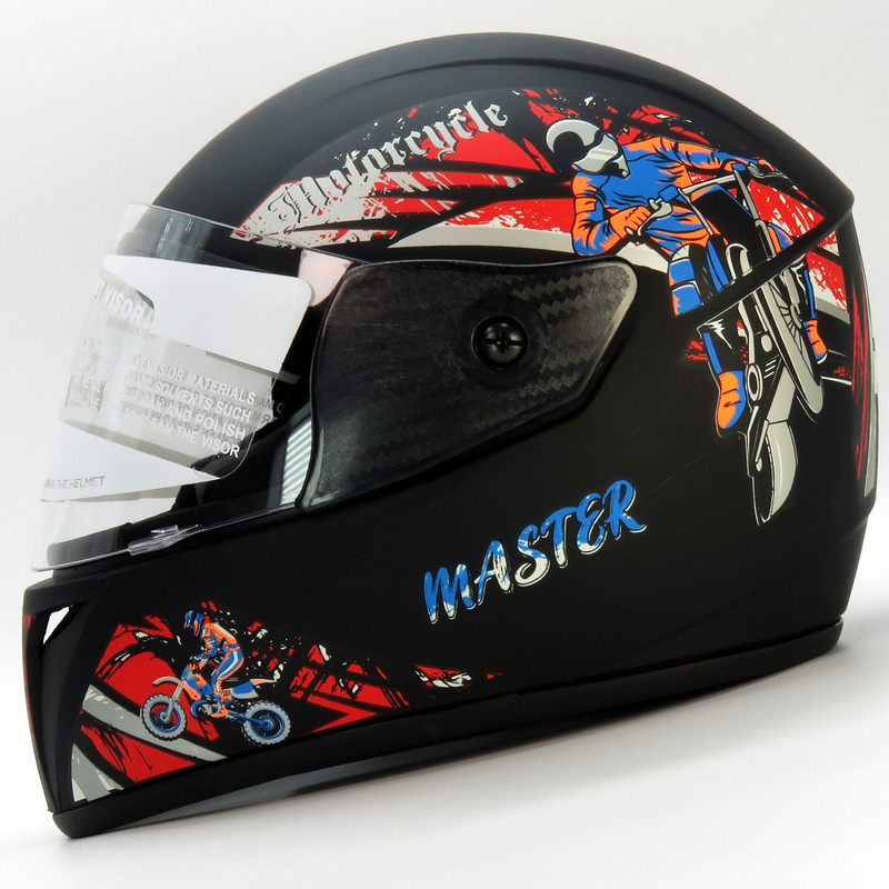 کلاه کاسکت بچگانه Master Ride کد 1922، کاسکت فولفیس بچهگانه با ویزور شفاف + آفتابی داخلی، وزن 980 گرم. خرید و فروش در فروشگاه magnetkala.com با قیمت مناسب، استاندارد DOT، طرح کارتونی و گارانتی اصالت.