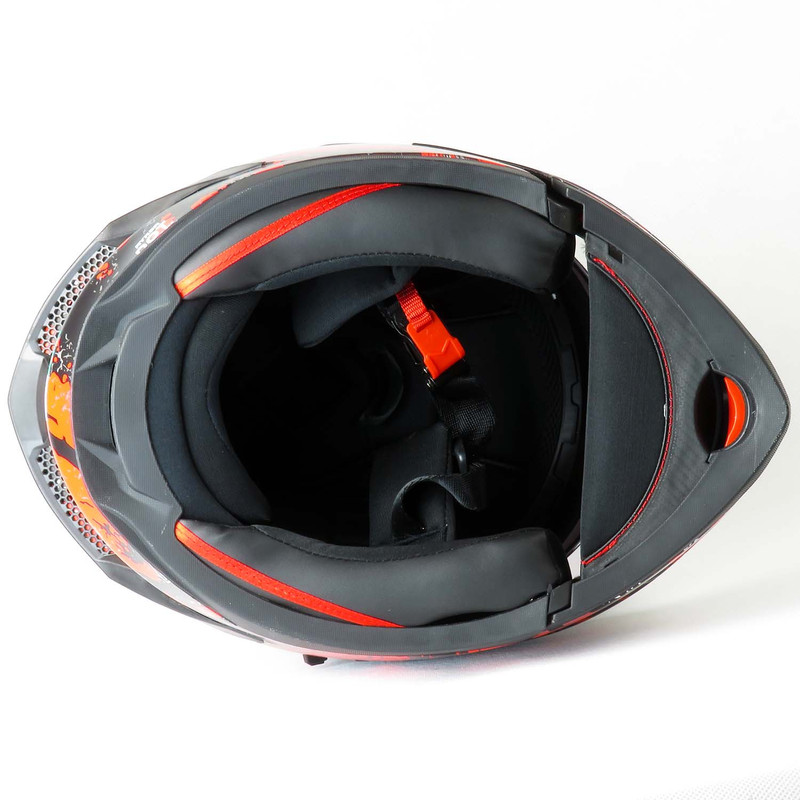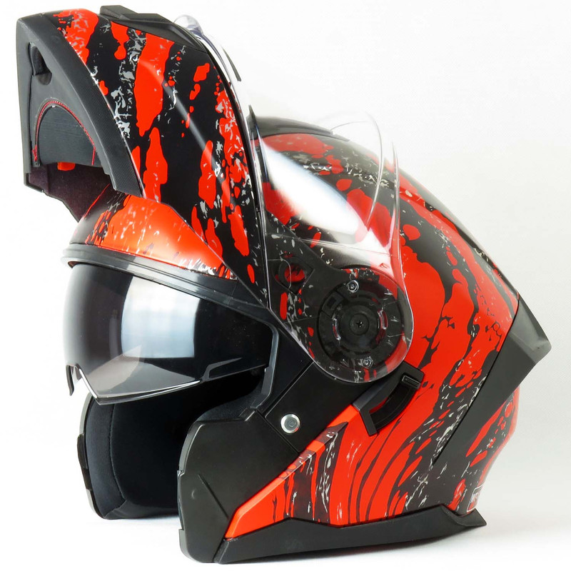 کلاه کاسکت Blaze رادین کد 1947، کاسکت فولفیس گرافیک آتشین قرمز-مشکی براق با ویزور شفاف + آفتابی داخلی + پمپ باد، وزن 1390 گرم. خرید و فروش در فروشگاه magnetkala.com با قیمت مناسب، استاندارد ECE R22.06 + DOT، گارانتی اصالت.
