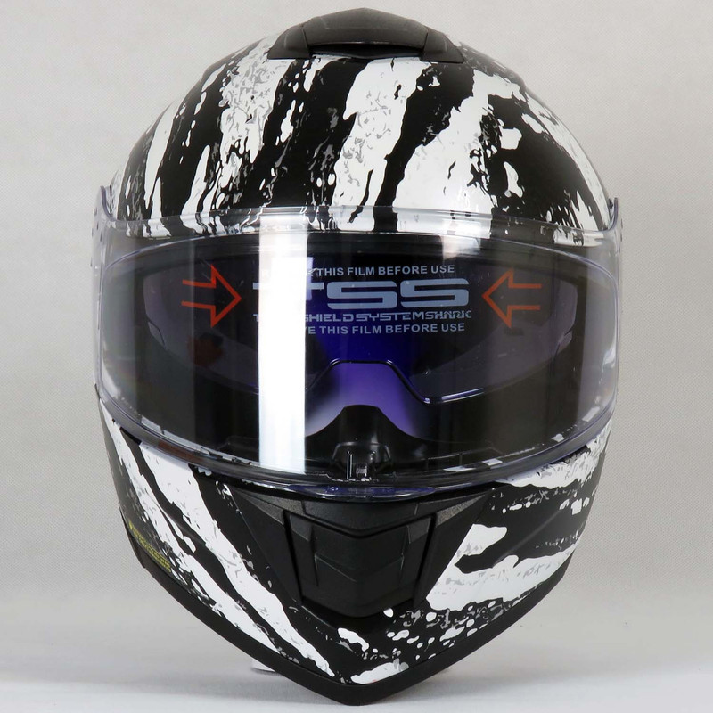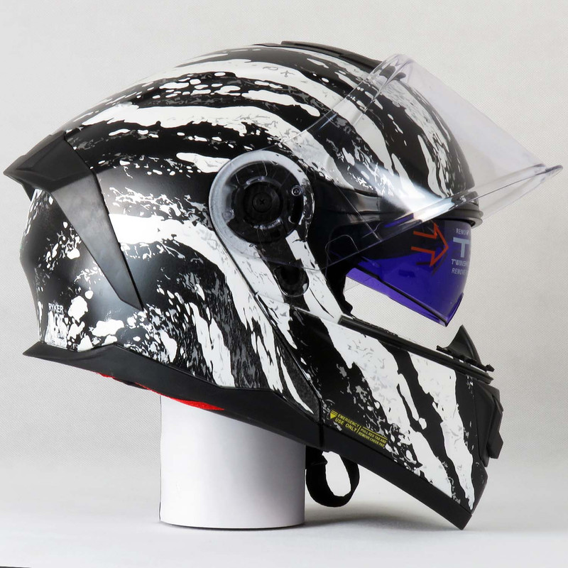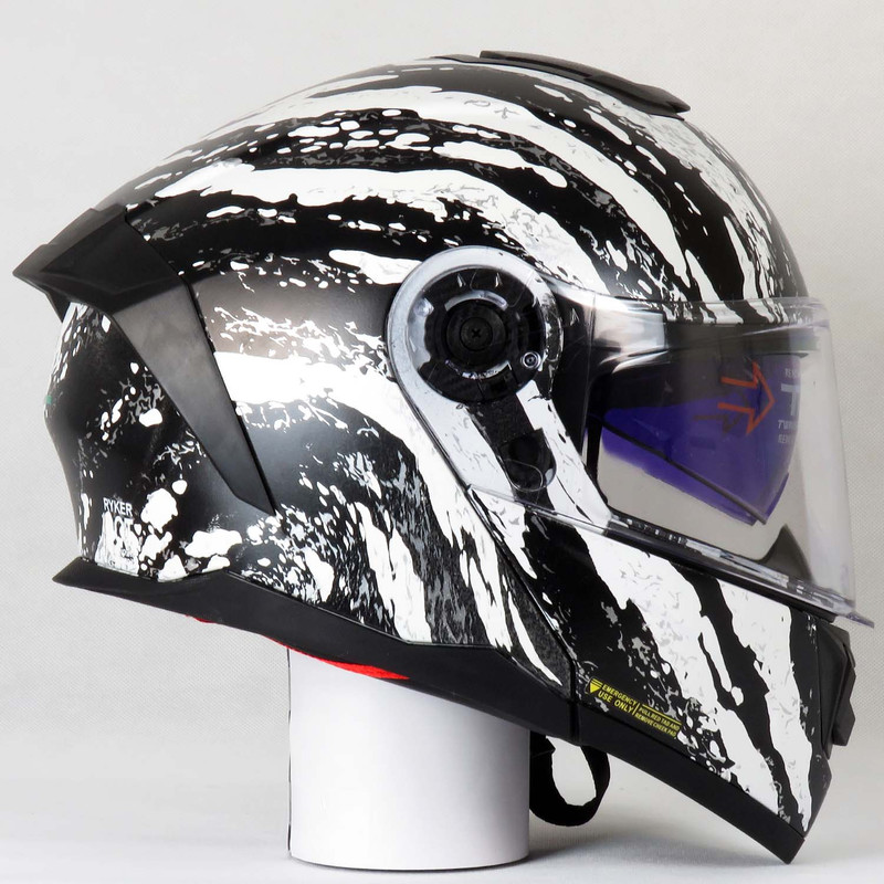 کلاه کاسکت IceFang رادین کد 1946، کاسکت فولفیس گرافیک یخی سفید-آبی براق با ویزور شفاف + آفتابی داخلی + پمپ باد، وزن 1410 گرم. خرید و فروش در فروشگاه magnetkala.com با قیمت مناسب، استاندارد ECE R22.06 + DOT، گارانتی اصالت.
