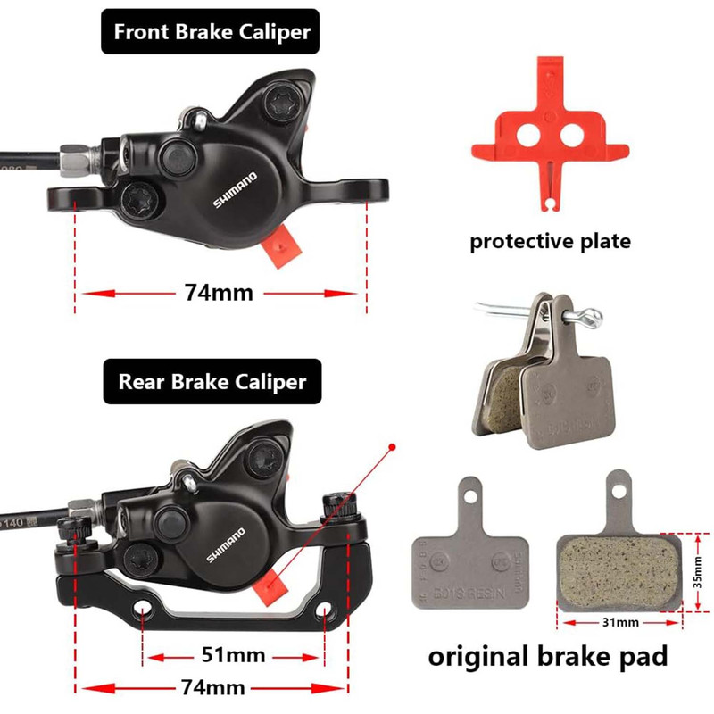 کالیپرها کاملاً خونریزی شده و آماده نصب هستند – فقط بست کنید و رکاب بزنید! وزن کل ست فقط ۵۵۰ گرم و کاملاً سازگار با دستهترمزهای شیمانو BL-MT200.