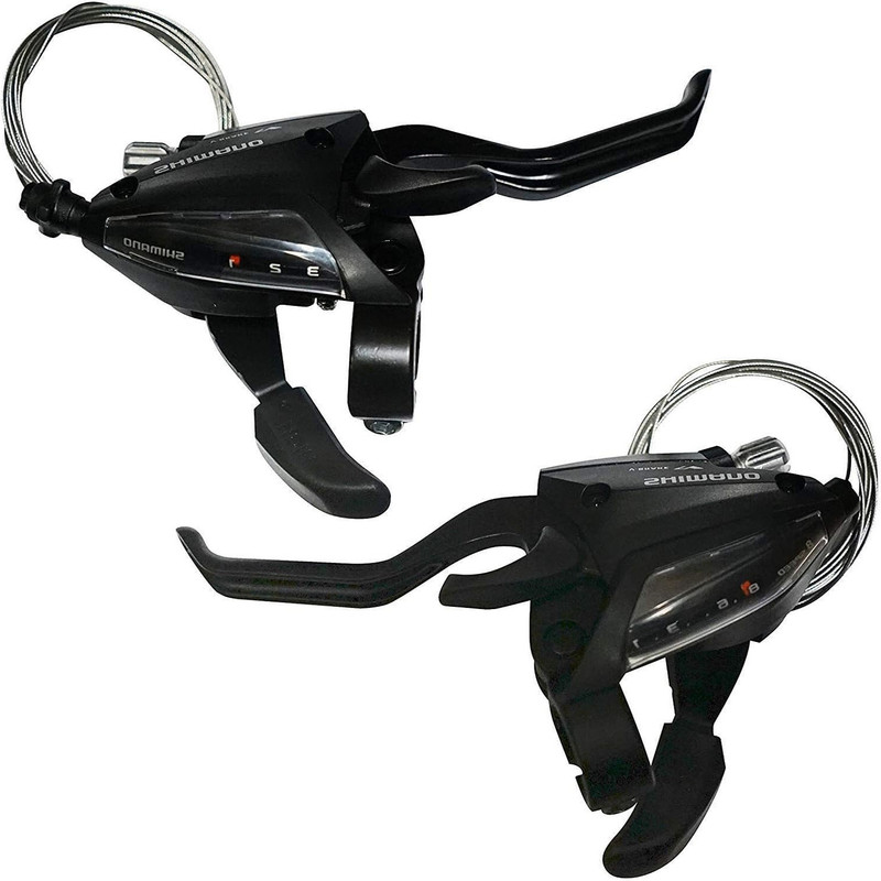 این ست شامل چپ (۳ دنده) + راست (۸ دنده) است و با یک حرکت انگشت شست یا اشاره دنده عوض میکند – فناوری EZ-Fire Plus شیمانو تعویض را فوقالعاده آسان حتی برای تازهکارها کرده است. نمایشگر دنده اپتیکال روی هر دو دسته، همیشه دنده فعلی را نشان میدهد و دیگر نیازی به نگاه کردن پایین نیست.