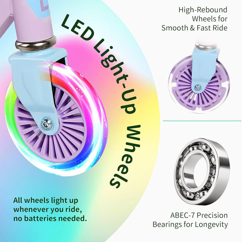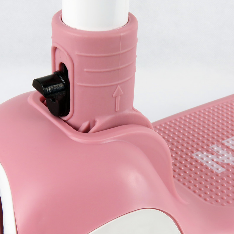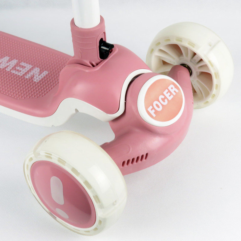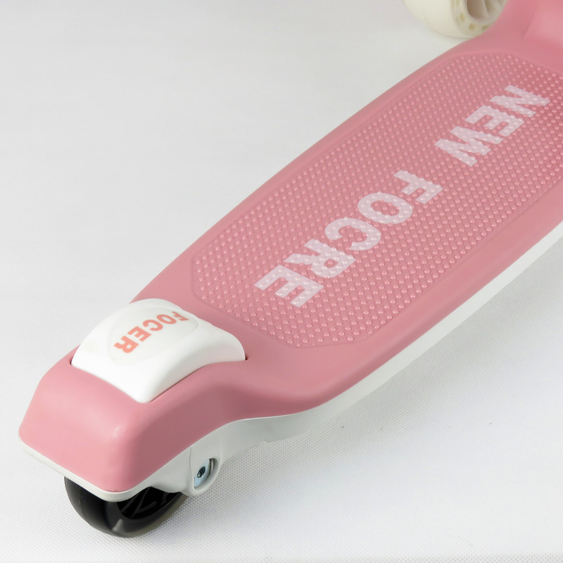 اسکوتر نوجوان مدل ZJG-608 رنگ صورتی برند scooter با ظاهر فانتزی و رنگ جذابش، هدیه ای ایده آل برای دختران پرانرژی است. بدنه ی مقاوم از جنس آلومینیوم با ترکیب پلاستیک فشرده، تحمل وزن تا ۶۰ کیلوگرم را ممکن می سازد. فرمان قابل تنظیم در پنج حالت مختلف، امکان استفاده برای سال ها را فراهم میکند. چرخ های LED دار در هنگام حرکت میدرخشند و جلوه ای شاد و کودکانه به بازی می دهند. سیستم موزیکال و طراحی تاشو باعث سهولت در حمل و نگهداری می شود. ایمن، بادوام و زیبا؛ مناسب برای رشد مهارت های حرکتی و تقویت تعادل کودکان و نوجوانان است .