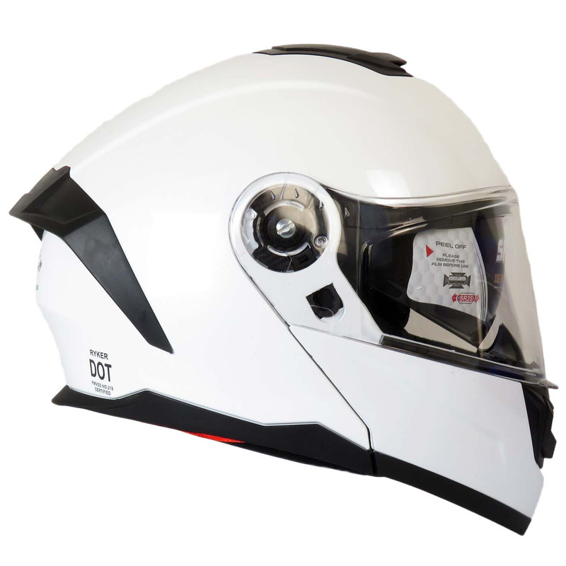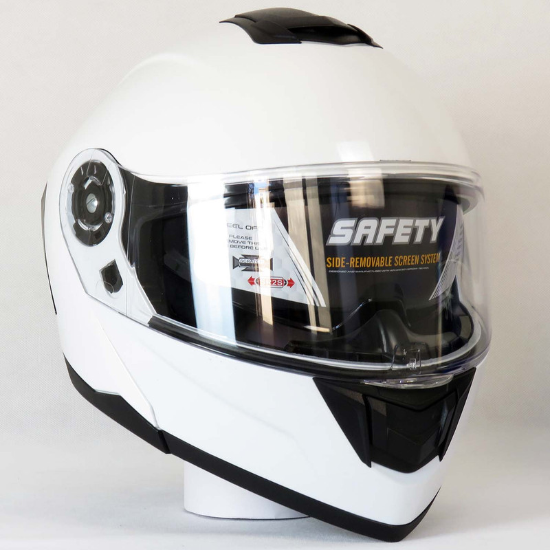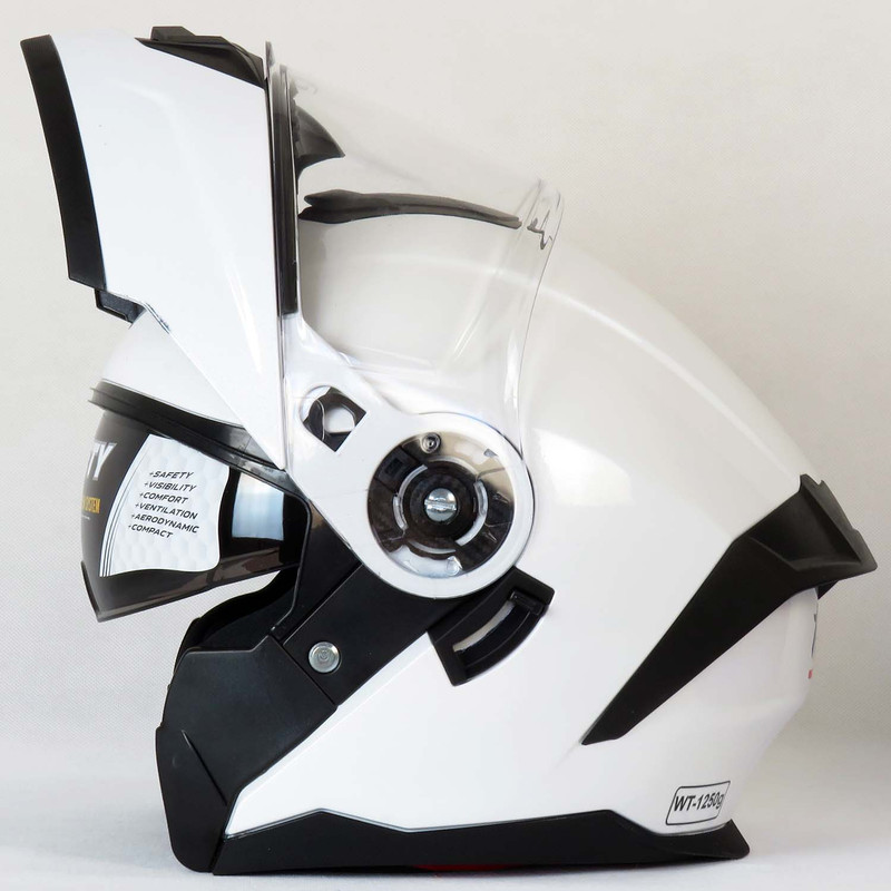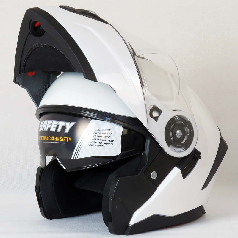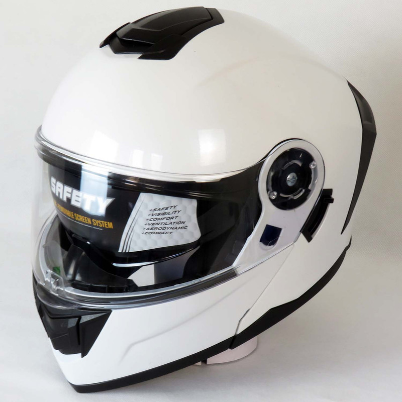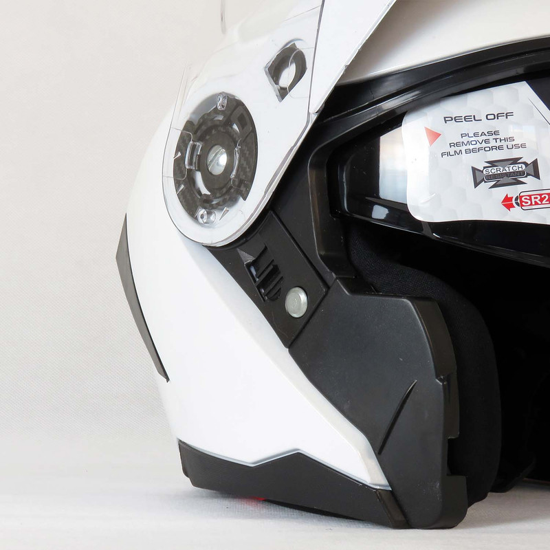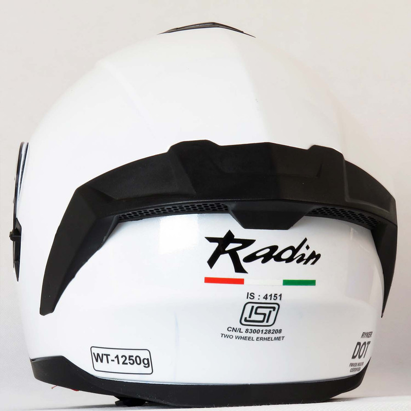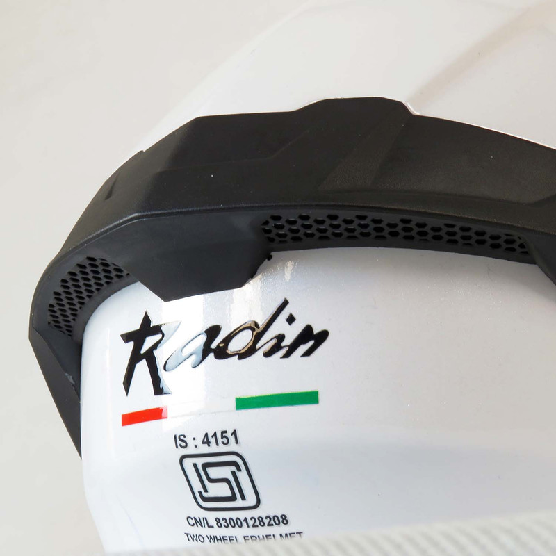 کلاه کاسکت رادین مدل Ghost White کد 1941 رنگ سفید براق این مدل، ظاهر لوکس و تمیز کلاه را برجسته کرده و در روز روشنایی بیشتری ایجاد می کند. بدنه از ABS تقویتشده با استاندارد DOT ساخته شده تا بیشترین سطح ایمنی در ضربه های ناگهانی را تضمین کند. فک متحرک با قفل محکم و عملکرد نرم، امکان استفاده راحت در حالت نیم فک را فراهم می سازد. طلق شفاف ضد خش دید وسیع و بدون تاری در شرایط مختلف نور را ارائه می دهد. کانال های تهویه چندگانه باعث گردش هوای مداوم و جلوگیری از گرم شدن فضای داخلی می شود. آستر داخلی از فوم نرم، ضد حساسیت و قابل شست و شو طراحی شده تا راحتی طولانی مدت را تضمین کند.