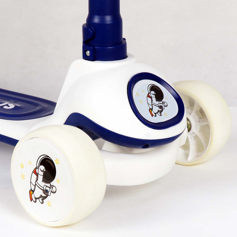 اسکوتر تعادلی Moonlight فضانورد با طراحی جذاب و رنگ آبی چشم نواز، تجربه ای هیجان انگیز و سرگرم کننده برای کودکان فراهم می کند. سه چرخ مقاوم و ترمز ایمن این اسکوتر، امنیت کودک هنگام سواری و تمرین تعادل را تضمین می کند. دسته قابل تنظیم در سه ارتفاع، امکان استفاده طولانی مدت و متناسب با قد کودک را فراهم کرده است. نورهای رنگی و موزیکال، سواری را برای کودکان جذاب تر و تحریک کننده مهارت حرکتی آن ها می کند. قابلیت تا شدن و وزن سبک، حمل و نگهداری آسان در خودرو، کیف یا کمد را ممکن می سازد. سطح پای پهن و ضد لغزش همراه با کیفیت ساخت بالا، حس استقلال و راحتی کامل را برای کودکان ایجاد میکند.