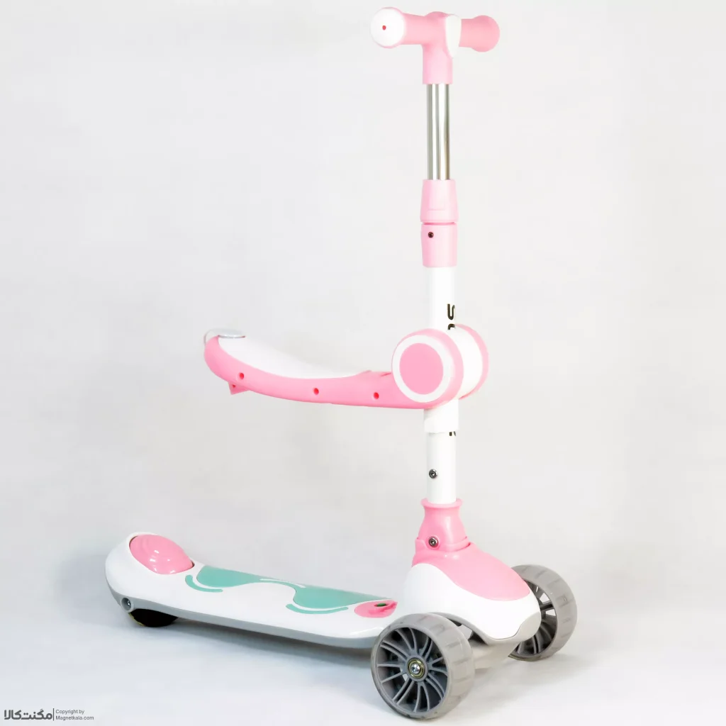 اسکوتر صندلی‌دار فراری کد 1888 تاشو، طرح فراری، صندلی راحت + سبد، چرخ ۱۲۰mm نورانی، فرمان تنظیم‌شو، تحمل ۷۰ کیلو. فوق لوکس و بامزه! خرید فوری از magnetkala.com